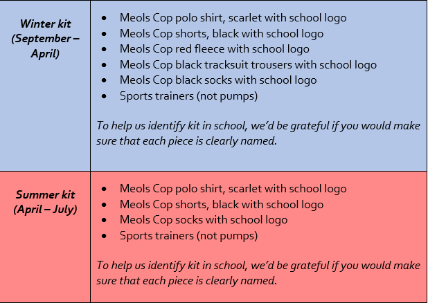 Following your feedback on the trackpants durability and quality, Mrs Ford has been working with Whittakers and they will be bringing in samples of updated trackpants that should prove to be more durable, especially around the knee. As Whittakers are able to improve the quality of these, we are keeping the branded trackpants as a staple offer for the PE kit, alongside the Meols Cop shorts.