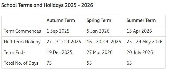 1st September 2025, 2nd September 2025, 5th December 2025, 5th January 2025, final inset date to be confirmed